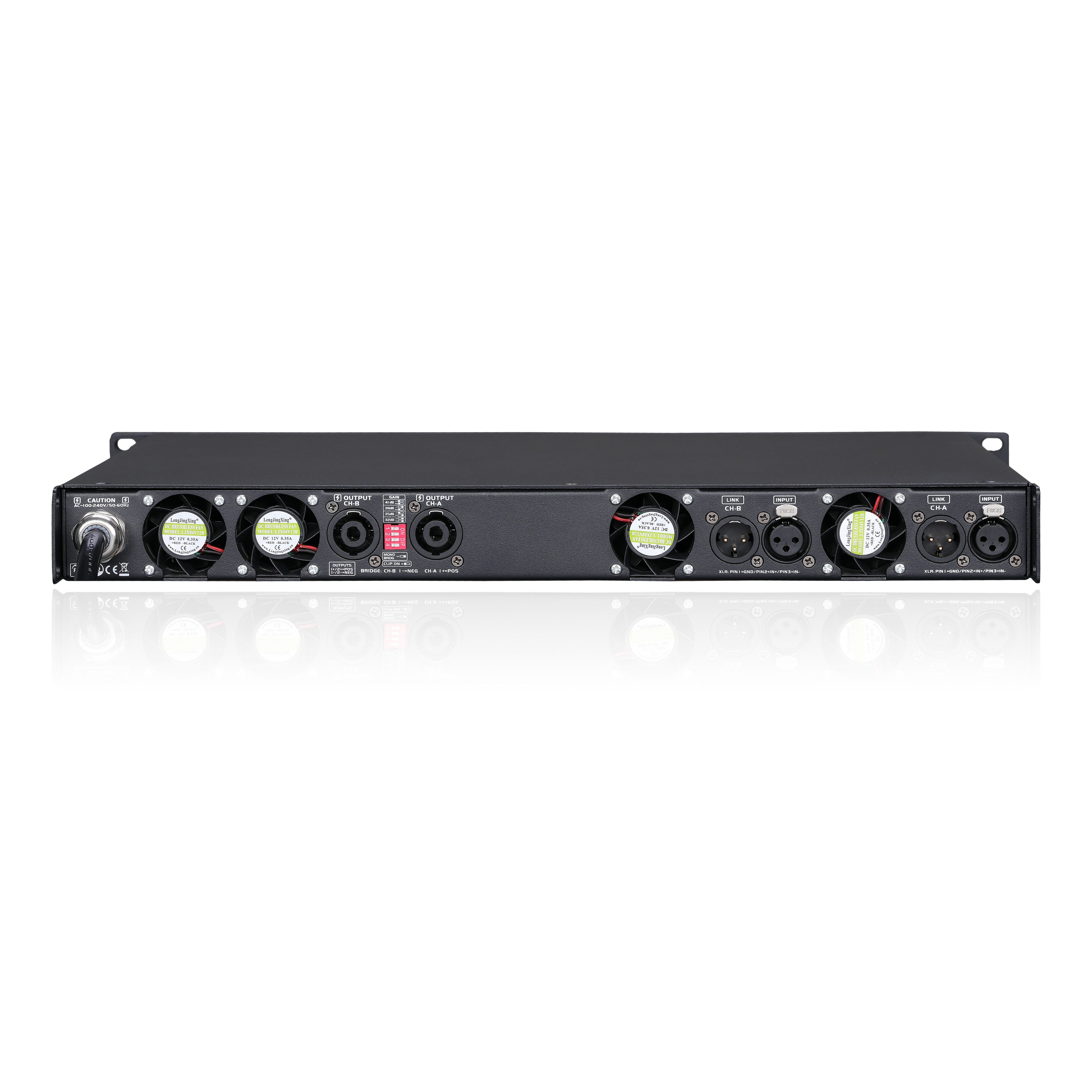 | DGS-1U 2 channels Short chassis | Frequency response: 20Hz-20kHz,+0/-1dB THD+N: <0.5%,20Hz-20kHz Slew Ratio: 50 V/µs @ 8 Ω Damping factor: >5000 @ 20-200 Hz S/N Ratio: >110dB Gain selection:32dB/35dB/38dB/41dB GaN--Gallium Nitride | DGS218 | 2*1800W(@8Ω) 2*2925W(@4Ω) *4000W(@2Ω) | 5400W(@8Ω) 7800W(@4Ω) | D | 1U |